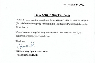 Naku Consulting Discontinues PublicInformationProjects And Commences "News Updates".
